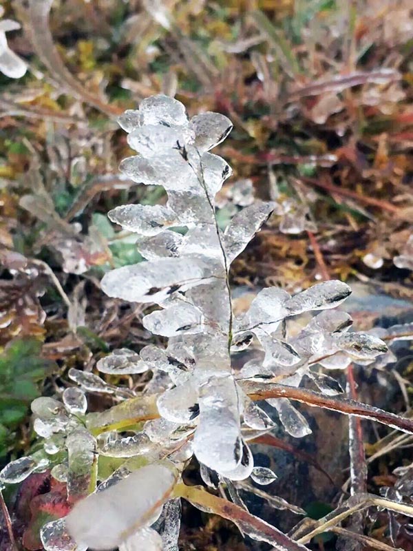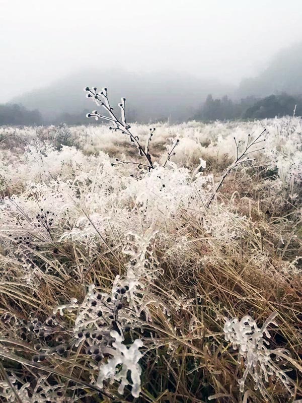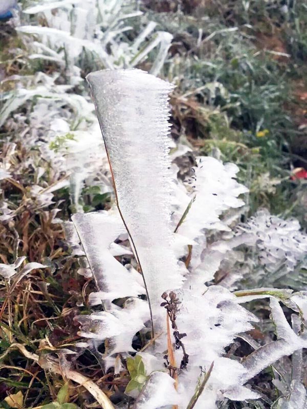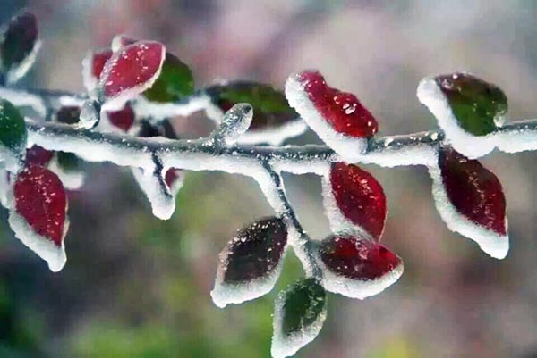冰睡得很香很甜,直到把自己睡成凝固的詩,透明的散文。是千里征途上的短暫休息,是奔流交響樂中的銀色休止符,看似停下前進的腳步,其實卻是靜靜凝固悄悄的醞釀著什么。冰藏進心里,它心中裝滿了冰,出于水而寒于水...
